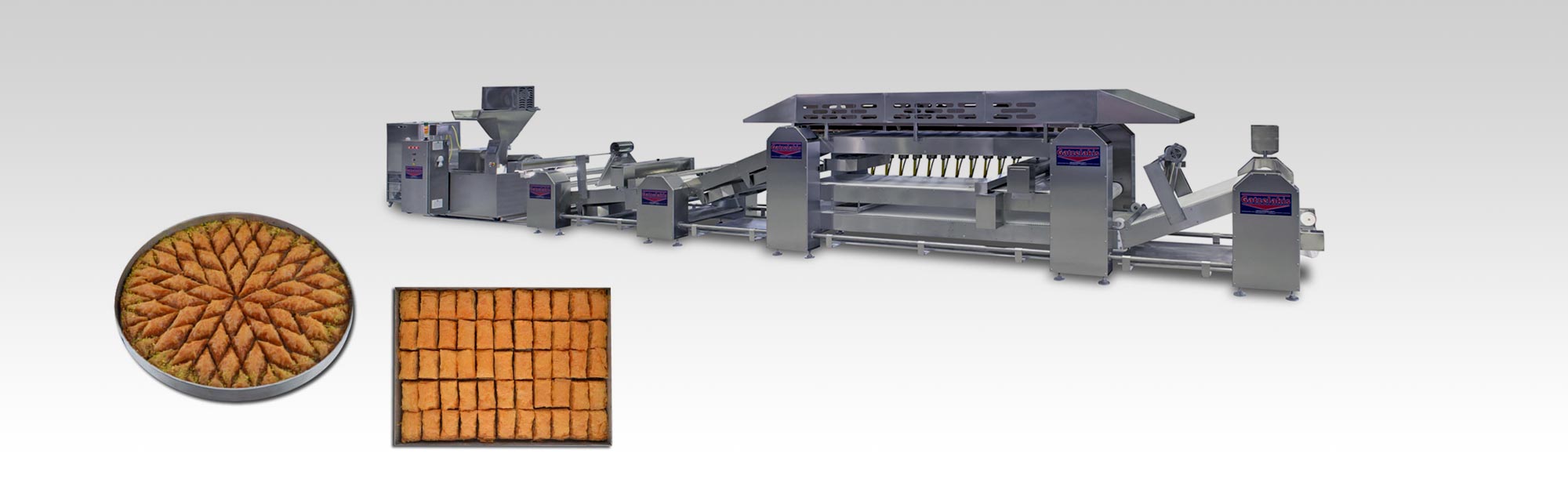 Η μηχανή παραγωγής φύλλου κρούστας τύπου Extruder είναι μία πλήρως αυτόματη γραμμή παραγωγής φύλλου μπακλαβά άριστης ποιότητας. Διαθέτει πλήρη ηλεκτρονικό πίνακα με μία οθόνη αφής που μας δίνει την δυνατότητα να προγραμματίζουμε κάθε προϊόν ξεχωριστά.
